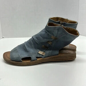 Miz Mooz Fizzy Gladiator Sandals Open Toe Leather Zip Up Side Shoes Blue Size 7