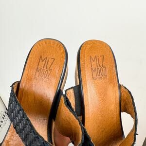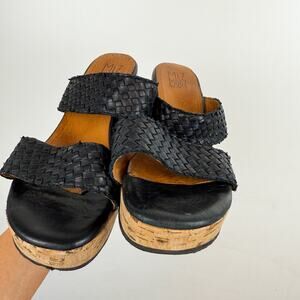 Miz Mooz Genna Black Leather Woven Slip On Sandals Platform Heel - 40 (9-9.5 US)