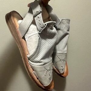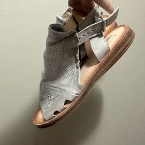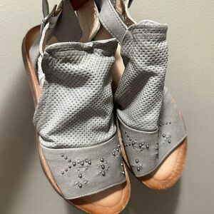 Miz Mooz Gray Sandals with Perforated Design and Elastic Collar