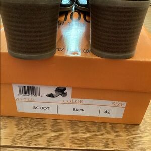 These Miz Mooz shoes are not only great looking and chic, but comfortable . The black leather is butter soft. Approximately a 21/2” heel with a side zipper for easy off/ on.