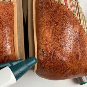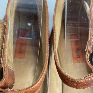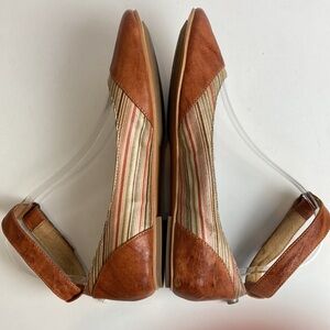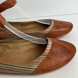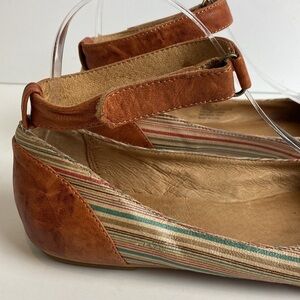 Miz Mooz Kazu Flats Brown Leather Pinstripe Accent Shoes W/ Ankle Straps size 7