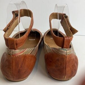 Miz Mooz Kazu Flats Brown Leather Pinstripe Accent Shoes Ankle Straps 7 Comfort