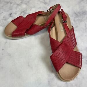 Miz Mooz Kind Red Cross Strap Leather Slingback Sandals NWOB