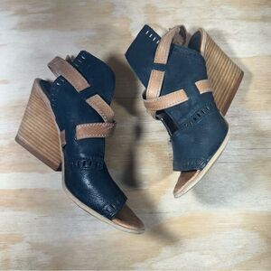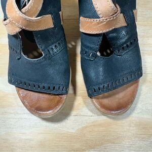 Miz Mooz two toned leather block wedge sandals in preowned condition
