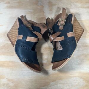 Miz Mooz Kipling Leather Black and Tan Wedge Sandals Women’s Size 7.5