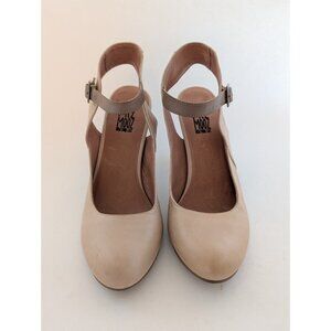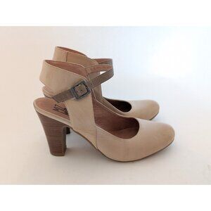 Miz Mooz Leather Buckle Mary Jane Heels Pumps Tan Size 9 Retro Janna