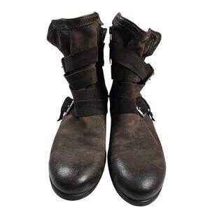 Miz Mooz Leather Buckle Shane Boots Mocha Brown Size 41 10 US Moto Bikercore