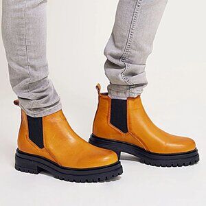 Miz Mooz Levona Chelsea Boots Size 38 7.5 8 Lug Sole Ochre Yellow Leather NEW