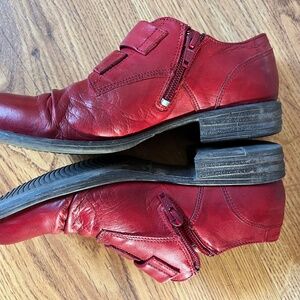 Gently used, very good condition with just a few small marks on the leather (see photos). Size 36 in a gorgeous crimson red color. These are soft as butter and incredibly comfortable - I’d keep them if they weren’t slightly too large for me!