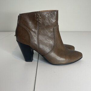 Miz Mooz Luella Brown Leather Point Toe Heeled Booties Size 6.5