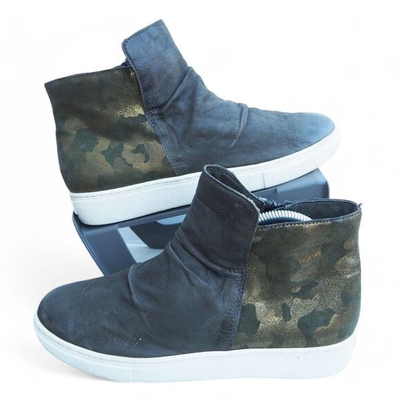Miz Mooz Lundy High Top Leather Side Zip Camo Wedge Sneakers Women's 9-9.5/40