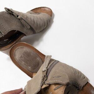 Miz Mooz Maddie Leather Heeled Sandals With Side Zipper & Tassel Accents Size 7.