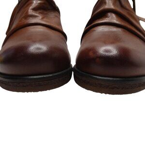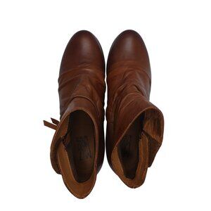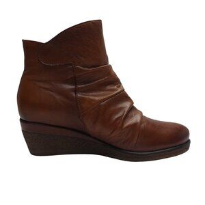 Miz Mooz Mayleen Ruched Brown European Leather Wedge Heel Ankle Boots Womens 7