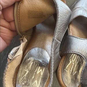 Miz Mooz Metallic Pewter Leather Heeled Sandals Open Toe Shoes Slingback Size 38