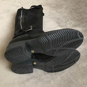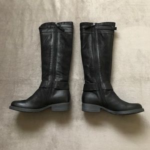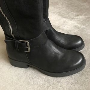 These gorgeous genuine leather boots are brand new! They have side zippers for easy on/off and zippers on the outside that expand the calf for a custom fit. Rubber soles provide excellent traction. Heel height is approximately 1.25" and total height is approximately 16.75". Price is firm unless bundled. Due to weight limits, the boots will not be shipped with their original box. If you want the box, extra shipping charges will apply.