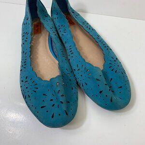 Miz Mooz Parvati Scalloped Laser Cut Ballet Flats Blue Size 10