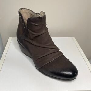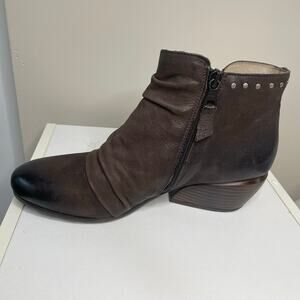 Miz Mooz Ruched Slouchy Leather Studded Ankle Boots Booties Zipper Brown Sz 38