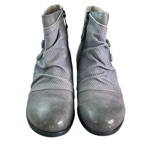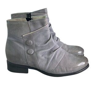 Miz Mooz Sallie Wide Gray Leather Ankle Boots with Button Detail SZ 38, US 7.5-8