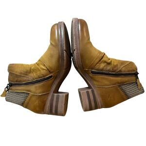 Miz Mooz Scarlett Leather Block Heel Ankle Bootie Acorn Tan Brown Women's 42