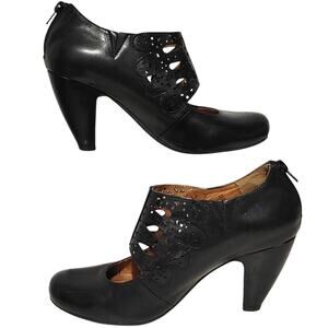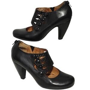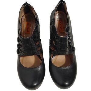 Miz Mooz Sharon High Heeled Shoes Black Leather Snap Button Womens US 8.5