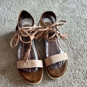 Miz Mooz Size 40 Lace Up Gladiator Tassel Ankle Strap Wedge Sandals