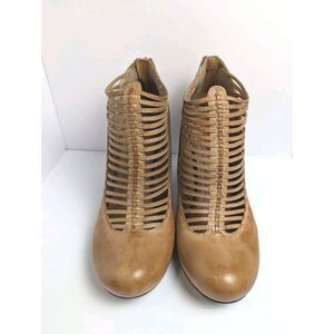 Miz Mooz Sloane Tan Cognac Leather T-strap Strappy Retro Heels Womens 8.5