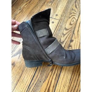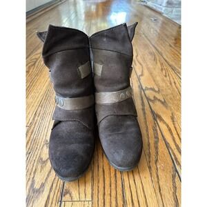 Worn once at Coachella. Very comfortable suede booties with a zipper on the inner side. The top of the boot has a wiring inside so it can be folded for a different look.