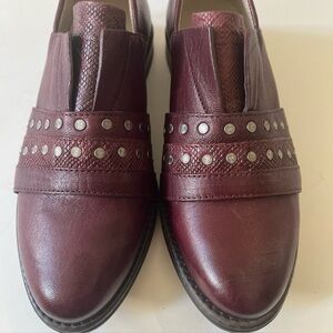 Miz Mooz TARO Maroon Leather Studded Loafers Slip on Oxfords 36/6 Excellent