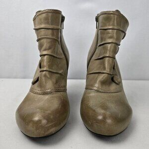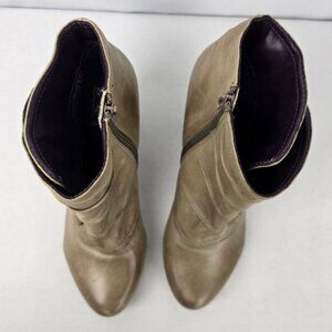 Miz Mooz Taupe Leather Denise Button Detail Heeled Ankle Boot Size 10