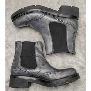 Miz Mooz The Inouvo Grey Leather Wingtip Chelsea Boots Womens Size US 7 EU 37