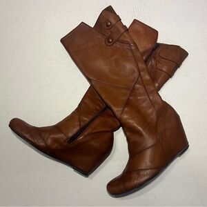 Miz Mooz Women’s 9 Cognac Brown Leather West Wedge Heels Tall Boots