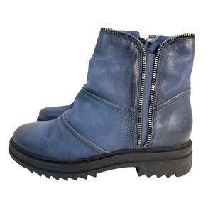 Miz Mooz Women's Frances Blue Leather Lined Ankle Boots Inside Zipper Sz 39