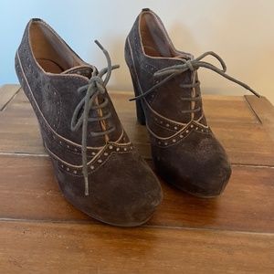Miz Mooz Women’s ‘Lance' Lace Up Oxford Ankle Platform Booties - Brown Suede - 7