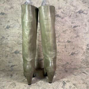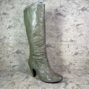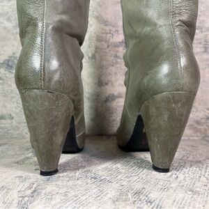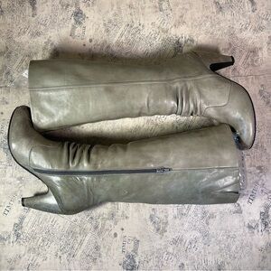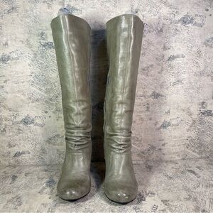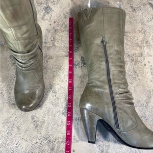 The supple leather upper is ruched at the ankle for sumptuous texture, while hidden goring at the top of the shaft provides a flexible fit.