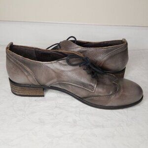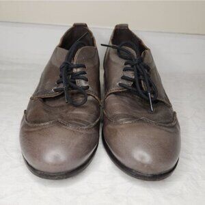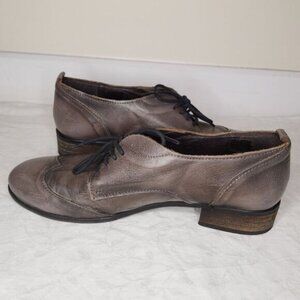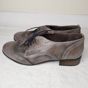 Grey leather Oxford Derby shoes with black laces and wing tips, 'Letty' by Miz Mooz.