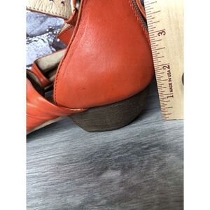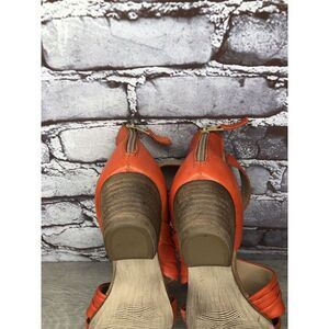 Selling Miz Mooz Cassie Orange Leather Ankle Strap Back Zip Heeled Sandals Women Sz 39EU/8.5M US