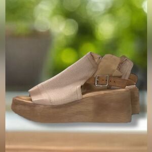 Miz Mooz Giselle Pearl Leather Ankle Strap Sandal Wedge Heels EUR 39 US 8.5 - 9