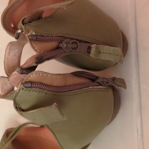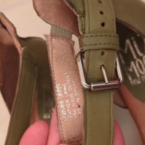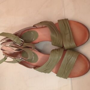 Miz Mooze Leather Heeled Comfy Boho Sandals neutral sage green Sz 41
