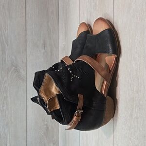 MizMooz Women Caleb Wide Ankle Heels Open Toe boots peep shoes sz 42/10.5-11