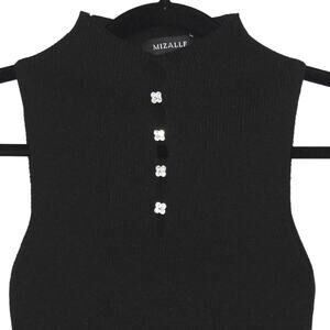 Mizalle Black Knit Sleeveless Top with Jewels and Cutout Large