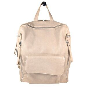Miztique Beige Faux Leather Lined Zip Convertible Backpack Lots of Pockets