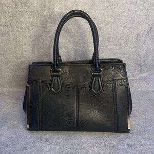 Miztique Black Vegan Leather Handbag, Gold Hardware, Shoulder Bag Tote Purse