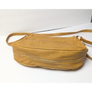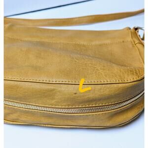 Miztique Crossbody Shoulder Purse Handbag Mustard Yellow Saddle Vegan Zip Around, tiny ink spot on bottom of purse, I super love this purse but am carrying one with the same color currently, super cute with rose gold/gold hardware, plenty of space, barely used, good condition.