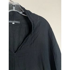 Black cotton gauze top with oversized shape, cowl v-neck collar, sleeveless silhouette. Measures 37” armpit to armpit, 28” length. Made in Japan