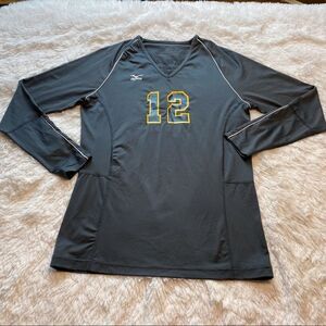 Mizuno Long Sleeve V-Neck Gray Shirt with Number 12 Size Large
