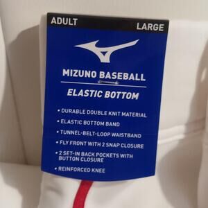 Mizuno Men's US L Large (34/34) White with Red Stripe Premier Piped Baseball Pants NWOT