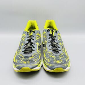 Mizuno Shoes Mens 14 Gray Yellow Paint Splatter Wave Creation 16 Running Sneaker