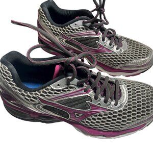 Mizuno Wave Rider 18 Womens Running Shoes US 9 Gray & Purple