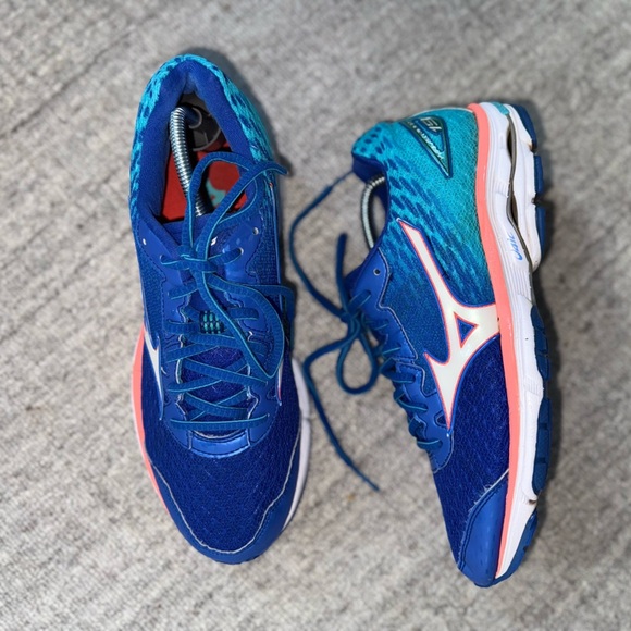 Mizuno Wave Rider 19 Women's Orange & Blue Running Shoe Size 9.8