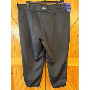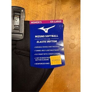 Mizuno Women's XXL Belted Black Softball Pant nwt elastic bottom fly front with two snap clothes, reinforced knees has small flaws in front side see pictures measurements 40” waist 24” inseam 12.5” rise (4456)